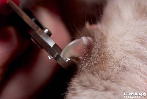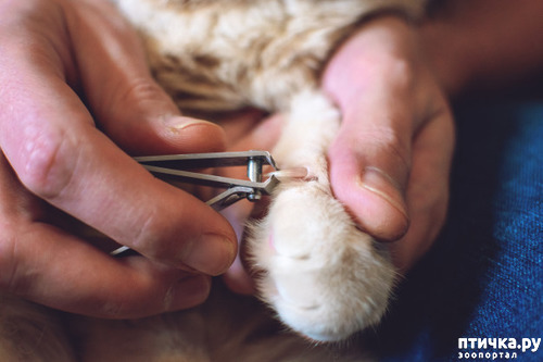 Просто очень внимательно смотреть, чтобы не задеть место с мягкими тканями ногтя. У меня одна кошь любит мякать мне лицо, только стриженные коготки спасают))).