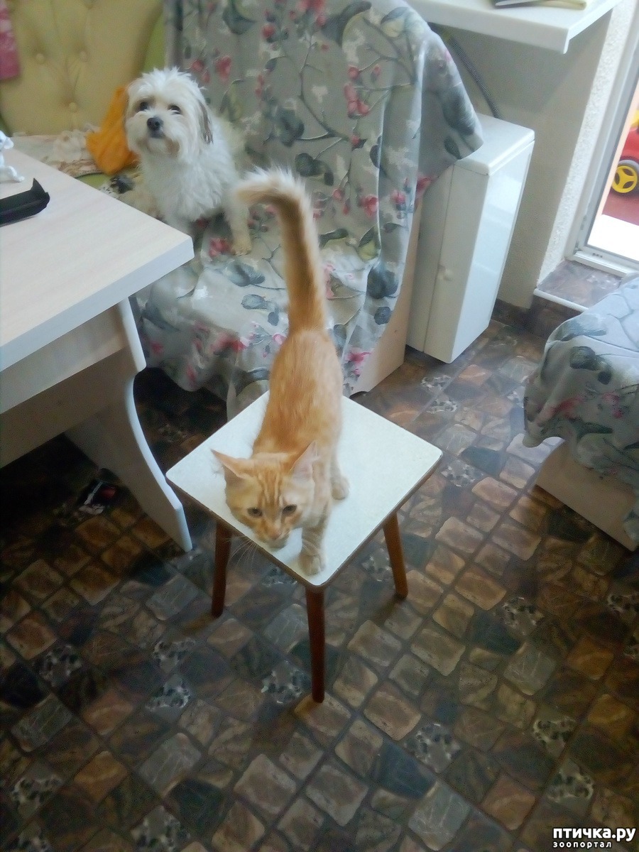 Мы с дочкой не смогли устоять и уже на следующий день у нас появился третий кошачий хвост! Это был полудикий, маленький, но очень боевой комочек (Бонька тут же получил от него за излишне проявленное любопытство). Пришлось Алтусю отселить на балкон, так как он боялся всего, даже звука голоса. Но буквально на следующее утро этот мелкий рыжух уже так скакал по балкону, что было ощущение что там не один маленький котенок, 1,5 месяцев, а стадо котищ))))