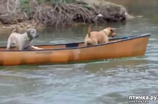 Две любопытные собаки на каноэ