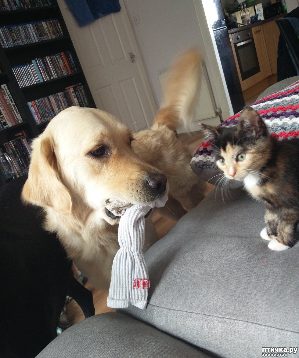 Оден, добрейшей души здоровяк, даже попытался предложить котёнку свою любимую игрушку.