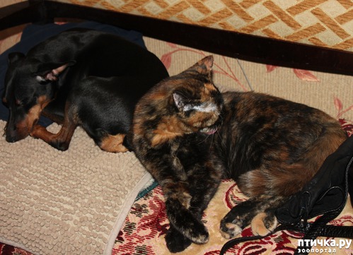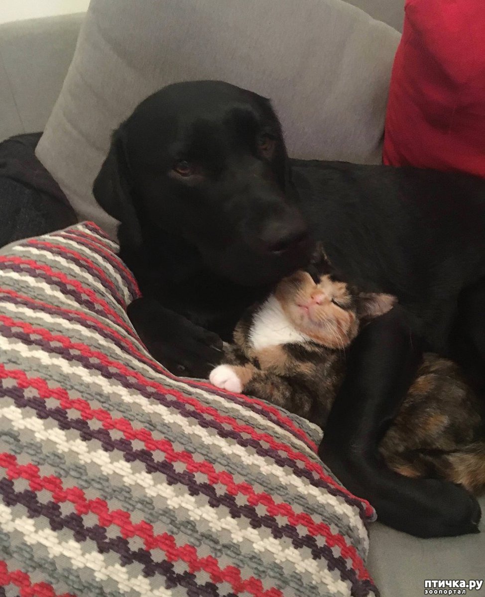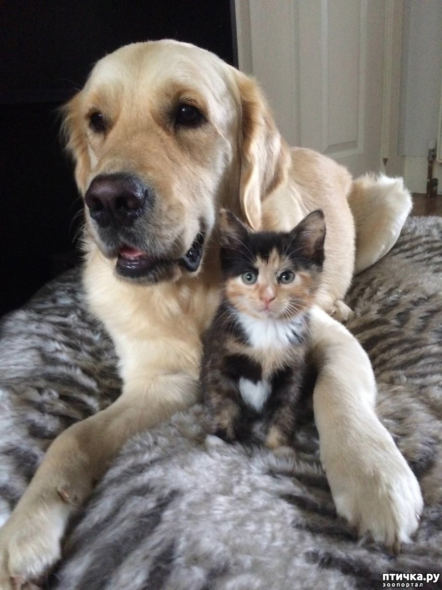 Кошке повезло – у неё есть два преданных и сильных собачьих брата, которые поклялись защищать её вечно