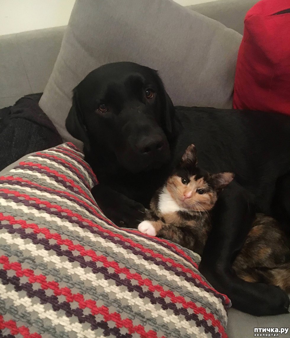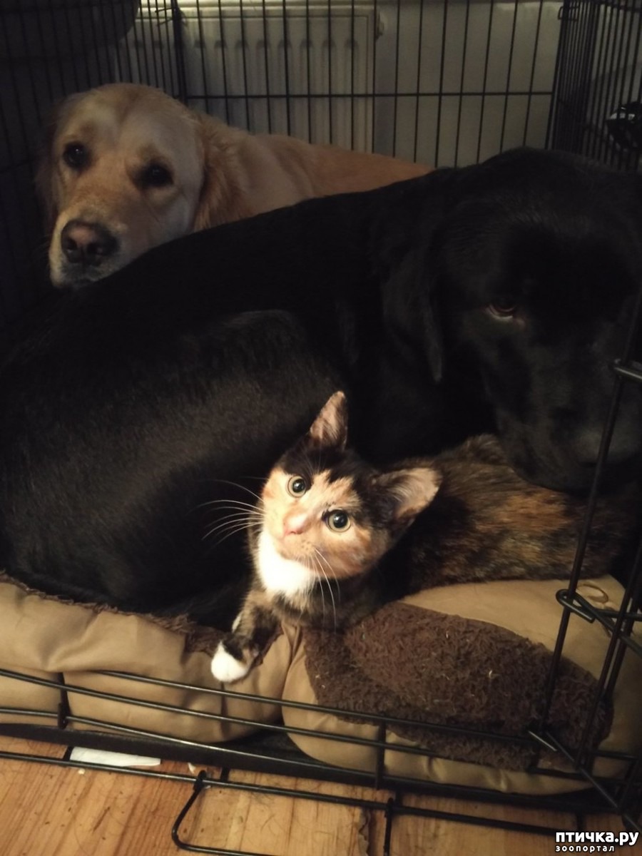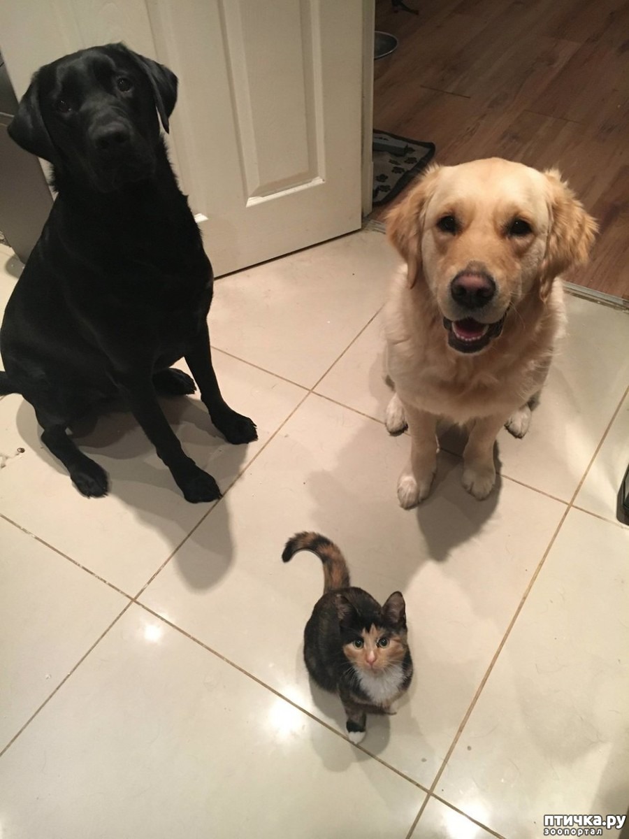 Несколько месяцев назад Клео приехала в свой новый дом, где познакомилась с двумя невероятно дружелюбными пёсиками. Золотистого ретривера зовут Оден, а лабрадора – Аксель.