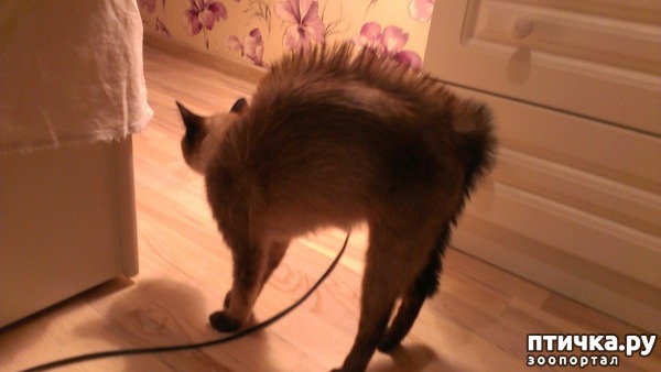 . Случилось однажды ей пропасть во время очередного загула. И вот оно чудо, через полтора года, счастливое возвращение блудной Крыськи)) Пришла брюхатая, но теперь ей не скучно они вместе с дочей имя которой Пискля)))Резвятся они круглосуточно -дым столбом! Что в этот раз её напугало неизвестно, но вид явно устрашающий! Забавный кадр не правда ли?)))))