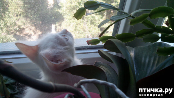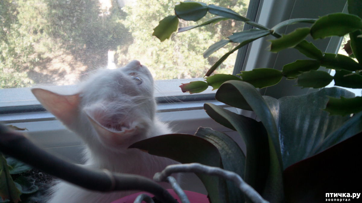Если Мурчику мы доступ к цветам перекрыли, то Беляш - маленький проныра - с легкостью запрыгивает на подоконник и прошмыгивает между горшками.