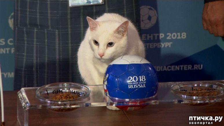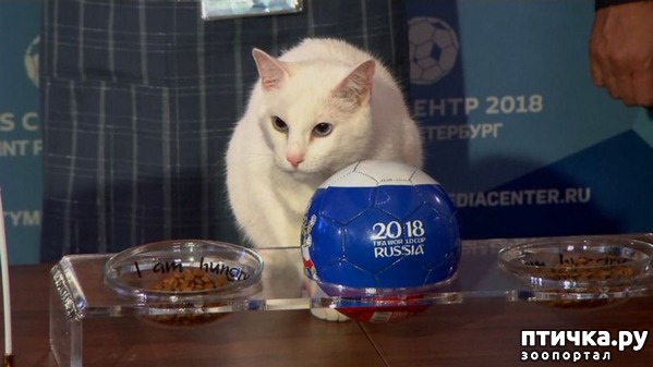 "Кот Ахилл из Эрмитажа предсказал победу сборной России над командой Саудовской Аравии в первом матче ЧМ-2018. Свой вердикт питомец вынес в пресс-центре чемпионата в Петербурге, выбрав миску с едой, на которой был изображен триколор. В прошлом году Ахилл выступал в роли предсказателя на Кубке конфедераций. Глухого кота выбрали «оракулом» из-за ярких аналитических способностей и необычного поведения. Кроме того, среди всех питомцев Эрмитажа Ахилл оказался наиболее стрессоустойчивым и человеколюбивым. "