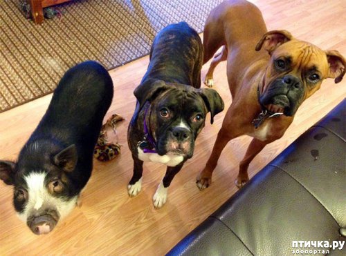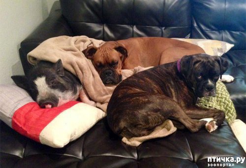 Эта свинья думает, что она собака. «Я не думаю, что Вирджиния понимает, что она не собака. Мы взяли её, когда ей было 3 месяца, и она выросла около них», - написала ее хозяйка. Эта свинья думает, что она собака (6 фото)«Она обожает обниматься. Она одержима моим парнем. Как только он садится, она вскакивает на диван и забирается ему на колени».