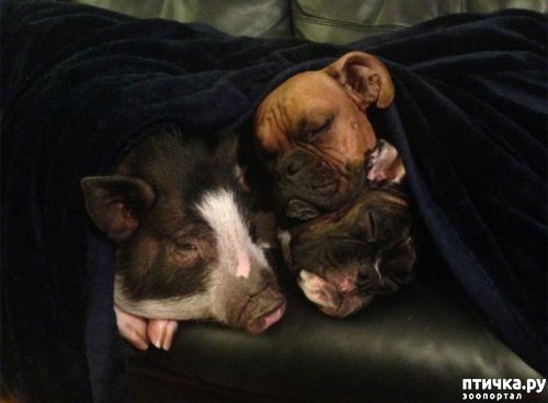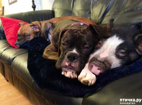 Эта свинья думает, что она собака.