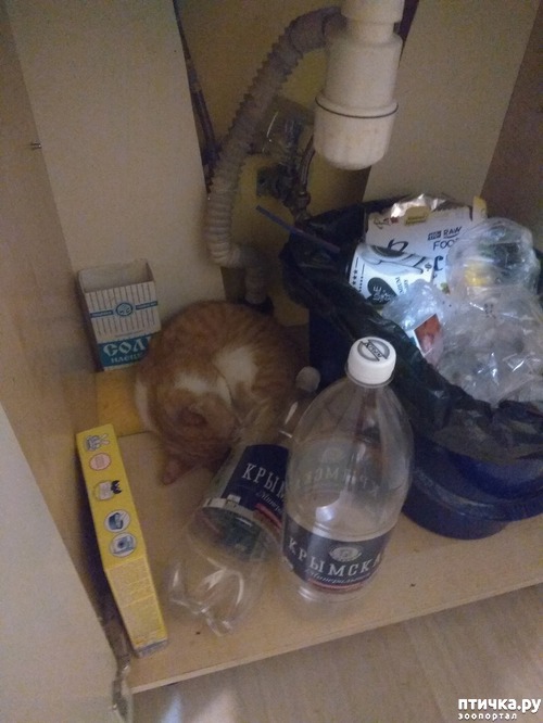 А котенка с передержки вот недавно "потеряли" в шкафчике под раковиной, я даже не подумала сначала, что его может это мест заинтересовать. Все обсмотрела уже! Собиралась бежать на улицу искать, прошмыгнул, а потом смотрю - дрыхнет у мусорного ведра. Вот что ему там вдруг улеглось. Подозреваю, что сморило в процессе