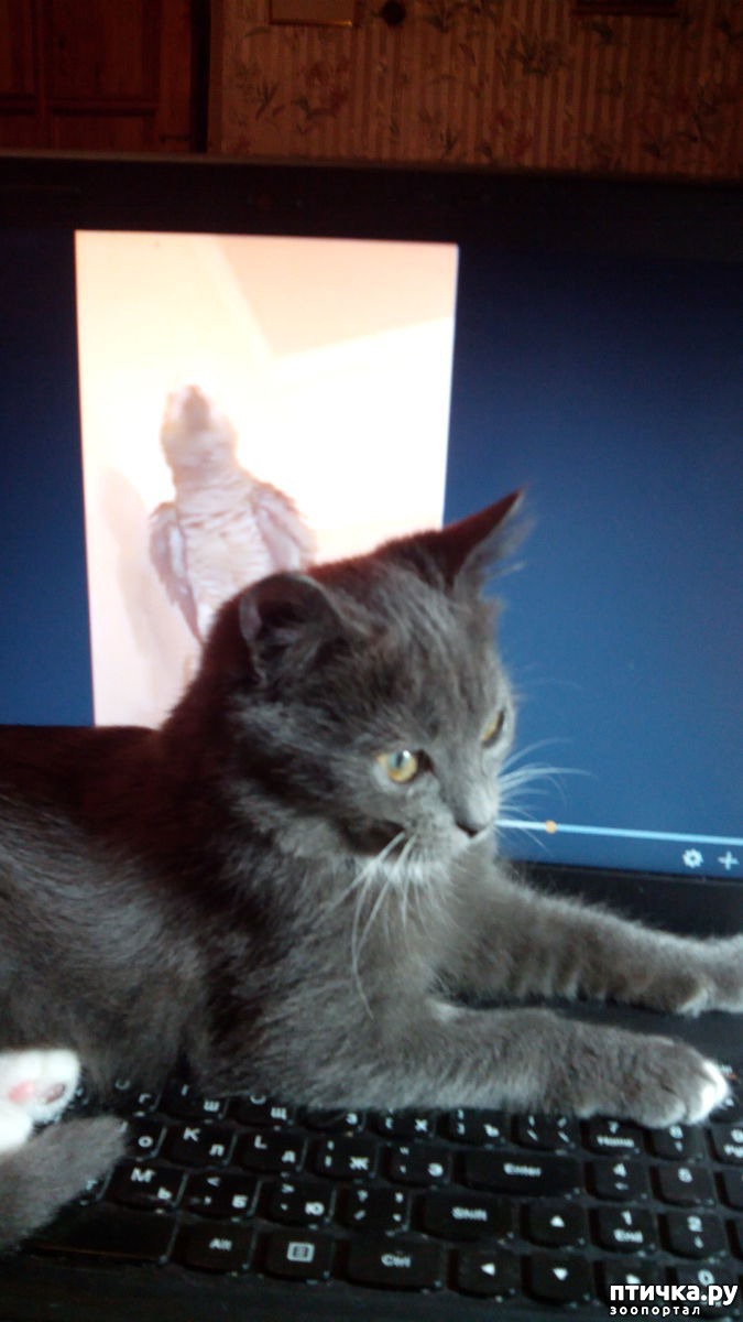 Потому что он тут же прыгнул на ноут и стал искать, где же попугай?