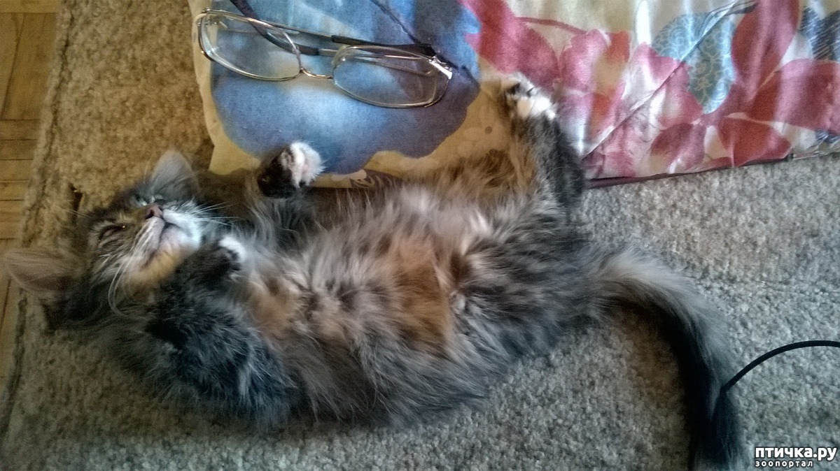 Пуша превратилась в маленькое неугомонное торнадо с охотничьими инстинктами. Играет буквально с любой вещью, носит в зубах, обожает мои тапки ( обхватит лапами, кусает их и буксует задними! ).