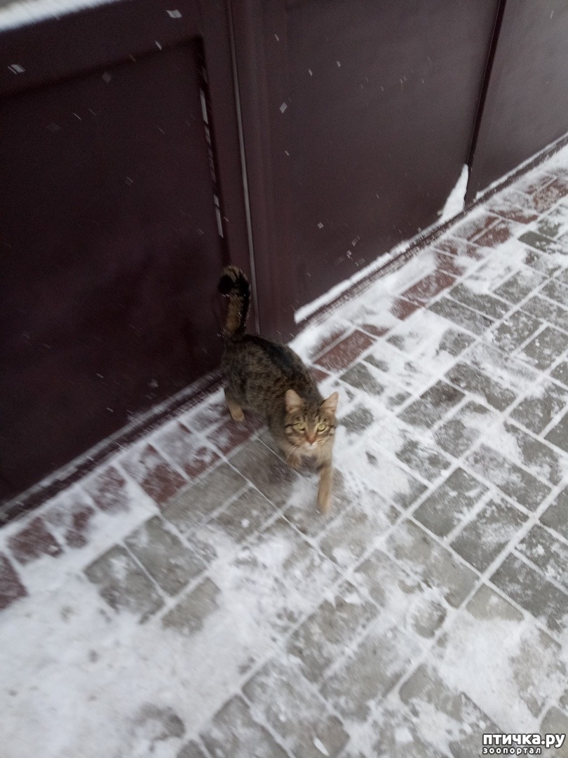 Вот и прошёл этап приручения Тигруськи))) Холод и пустое брюхо всё же вынудили её довериться нам. Сначалалишь решалась принимать еду, теперь она подружейная кошка))) Сидит в тепле ест до сыта, оставляет иной раз мою подругу без бутербродов