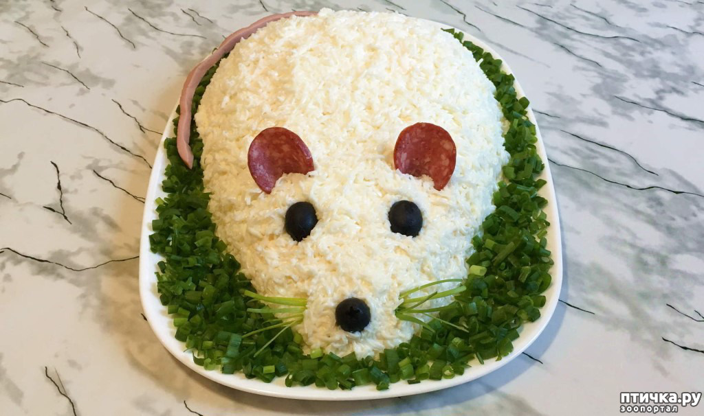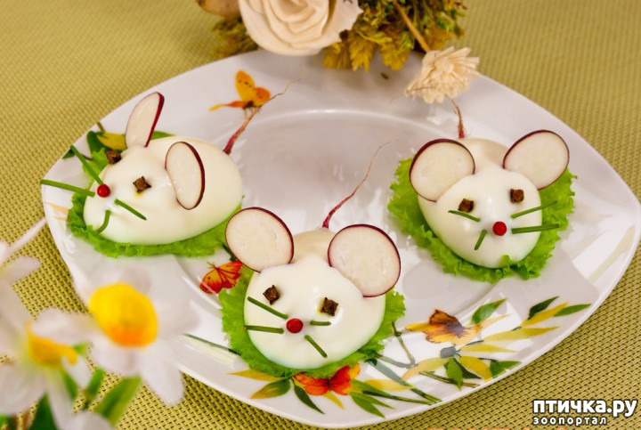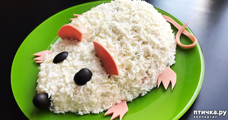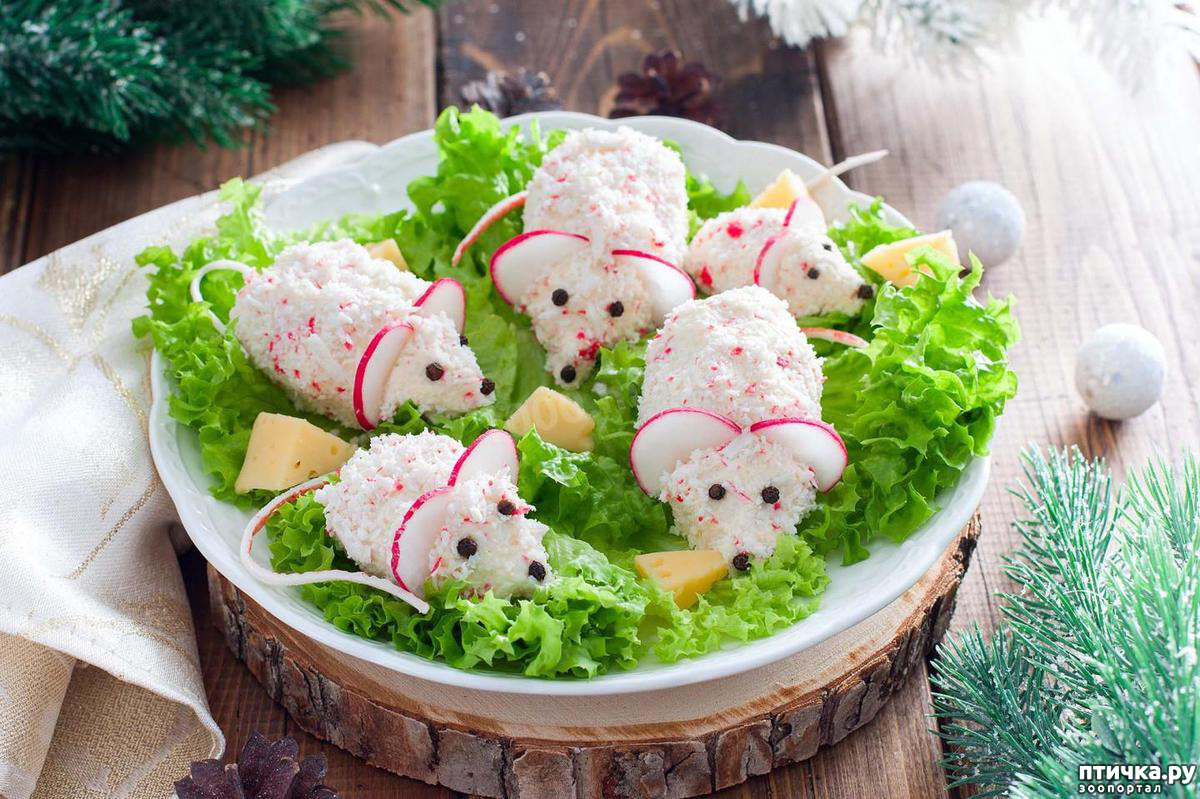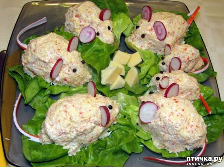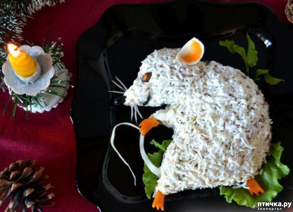 Ну, а нынче я специально присмотрела в интернете разнообразные варианты символа нынешнего Нового года для новогоднего праздничного стола. Такой крыской я, однако, продублирую свой салат из крабовых палочек. Очень приглянулся подобный вариант. Ну, и вы можете брать на вооружение если и вам приглянулась эта незамысловатая крыска.