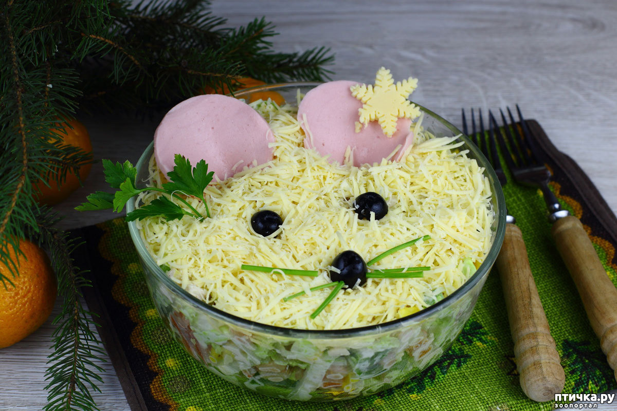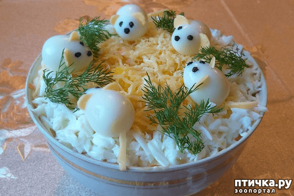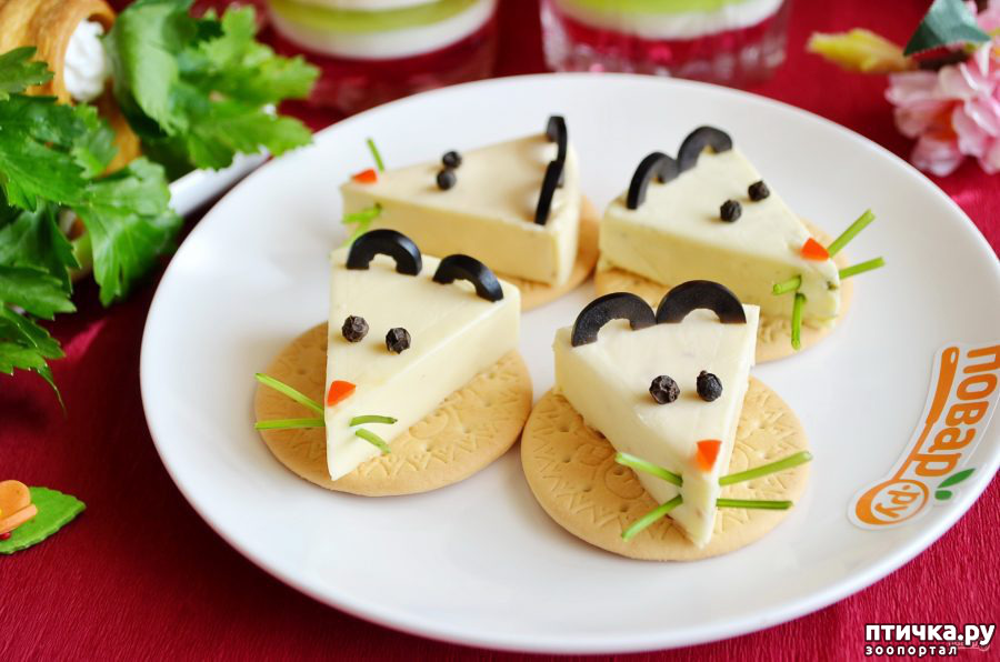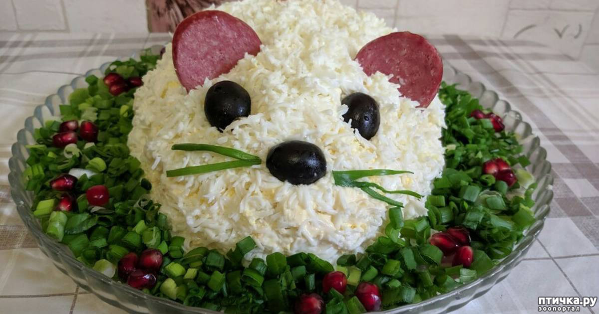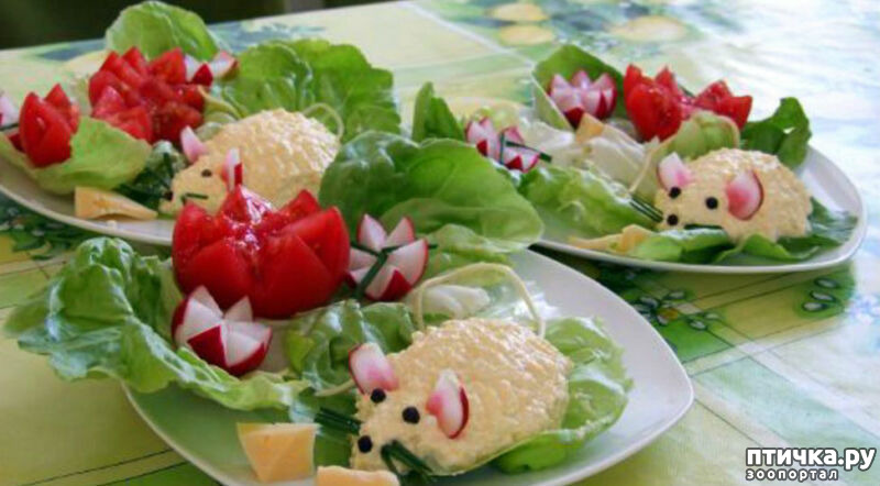 Ну, а нынче я специально присмотрела в интернете разнообразные варианты символа нынешнего Нового года для новогоднего праздничного стола. Такой крыской я, однако, продублирую свой салат из крабовых палочек. Очень приглянулся подобный вариант. Ну, и вы можете брать на вооружение если и вам приглянулась эта незамысловатая крыска.