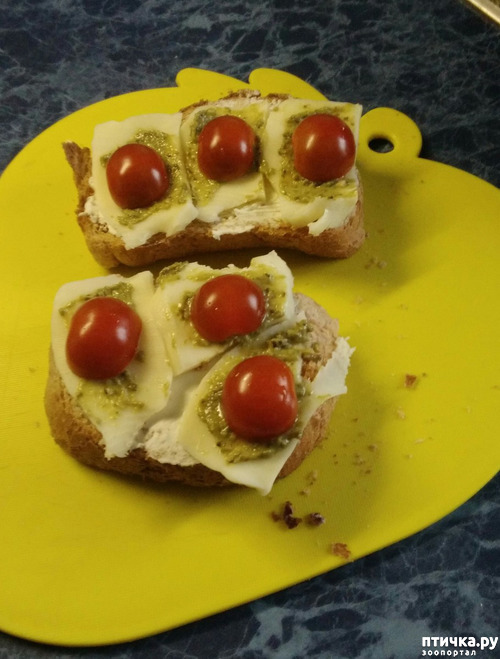 а еще мы на работе делали бутербродики с сыром моцарелкой и помидорками на втором блюде лежат.