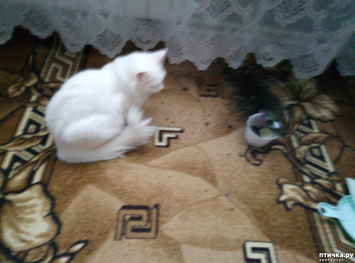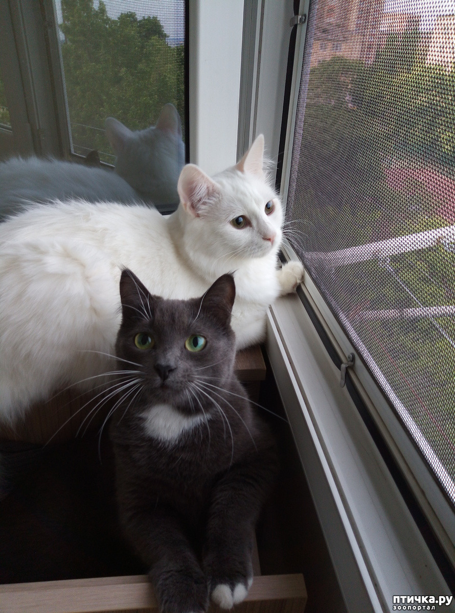 Мурчик сидел на полу. Кто запрыгнул на подоконник, за штору, я так и не поняла.