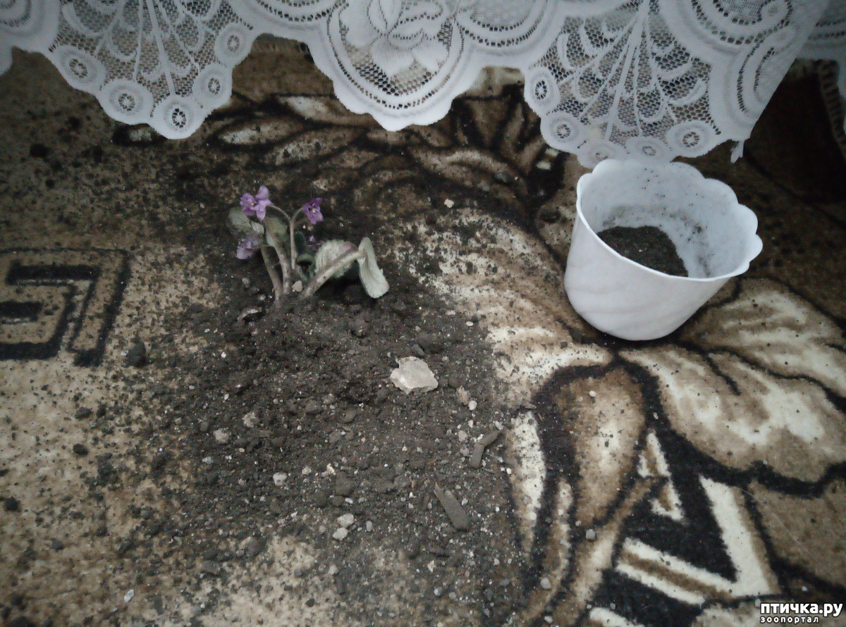 Вчера ночью они порылись в пересаженных фиалочках на подоконнике в кухне. Обгрызли цветочки и одну фиалочку даже вытащили с корнем.