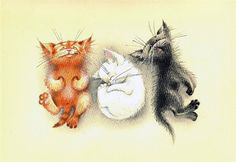 Сутеев жил, жив и будет жить! Тема его трех котят повторяется в творчестве многих молодых художников. Предлагаю вашему внимание работы художника-иллюстратора Юлии Корякиной.