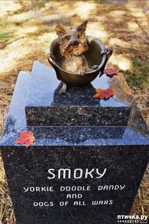 Однажды собака сэкономила труд 250 рабочих на аэродроме. Им пришлось бы копать новую канаву для прокладки кабеля. Для этого также нужно было бы переместить 40 боевых самолетов. Была найдена закопанная старая узкая труба. Собаку поставили у одного конца трубы, а ее хозяин звал Смоки из другого конца. И крошечная собака с привязанным к ней проводом, не побоялась проползти весь этот длинный тоннель.
