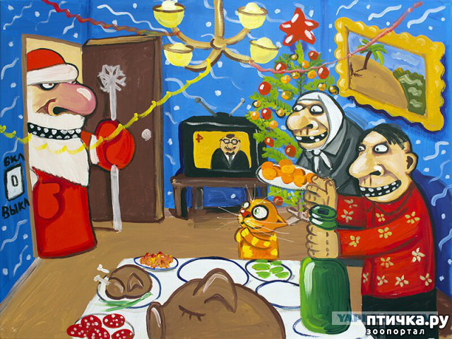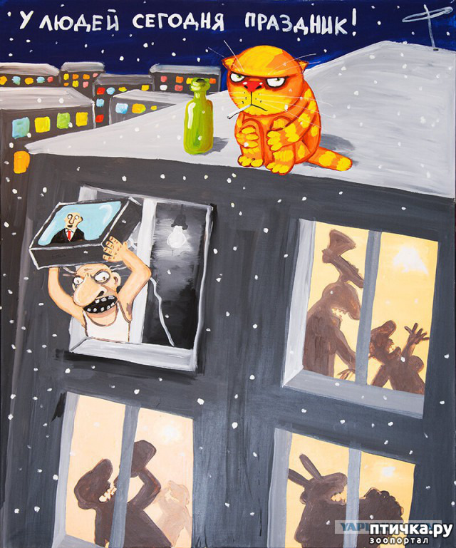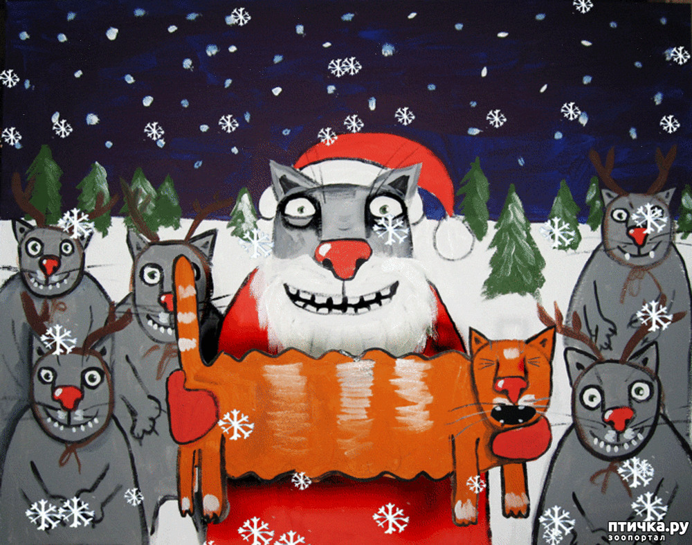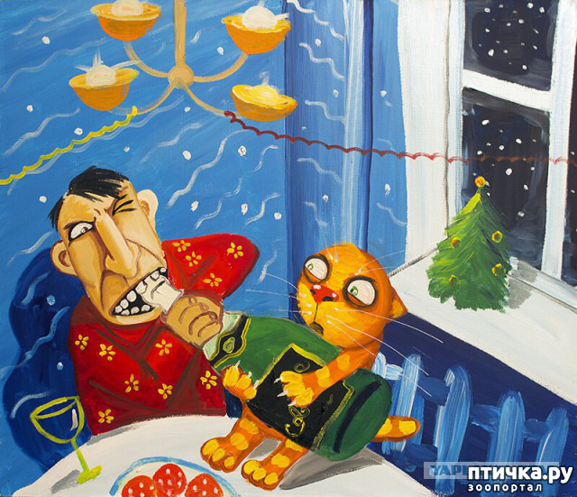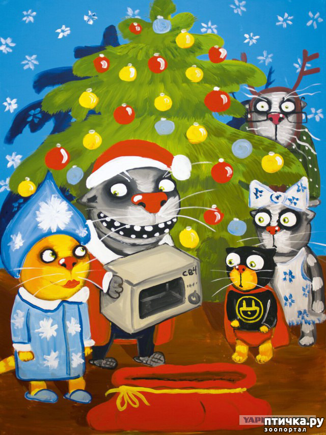 А теперь добавлю немного новогодних котов Васи Ложкина. И пусть они зажигают в канун Нового года на нашем сайте. Я помню, что Иринка уже выкладывала немного новогодних котов, но я, не смотря на это, с вашего позволения, продолжу радовать вас его работами, которые не могут не улыбнуть.