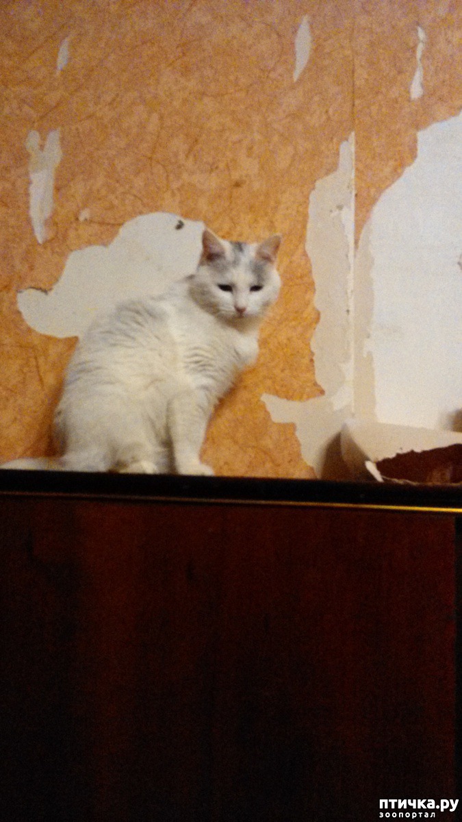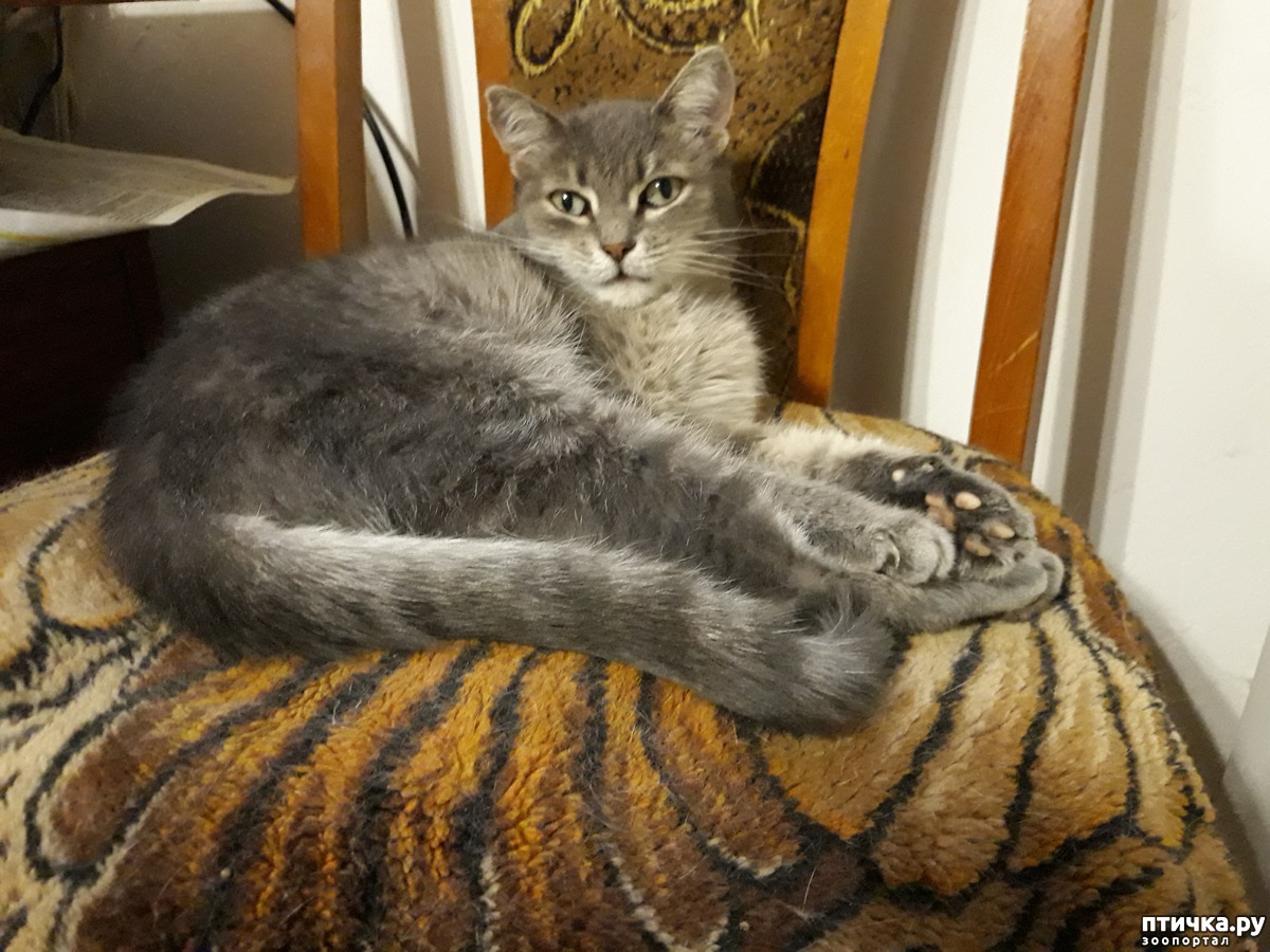 На фотографии наша старшая Грэмс. У нас она 18 лет. Подобрала её на мусорнике, взрослой. Так что лет ей больше. Поэтому за это безобразие даже слова её не сказала, возраст же преклонный. Сейчас я ей поставила коробку на шкаф, и она драть обои перестала. Так что на днях куплю подходящий домик, который решит проблему и украсит комнату: в нём же будет Грэмс)). Грэмс в отличной форме, надеюсь проживёт ещё долго.