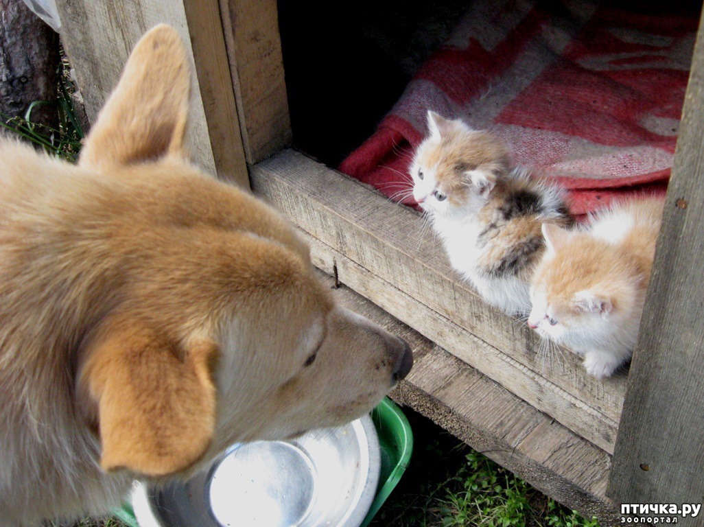 А Пальма, так звали хозяйку конуры, решила присвоить родившихся котят и со скандалом выставила кошку из будки. Хозяйку тоже не подпускала, стояла насмерть защищая “своих” детенышей.