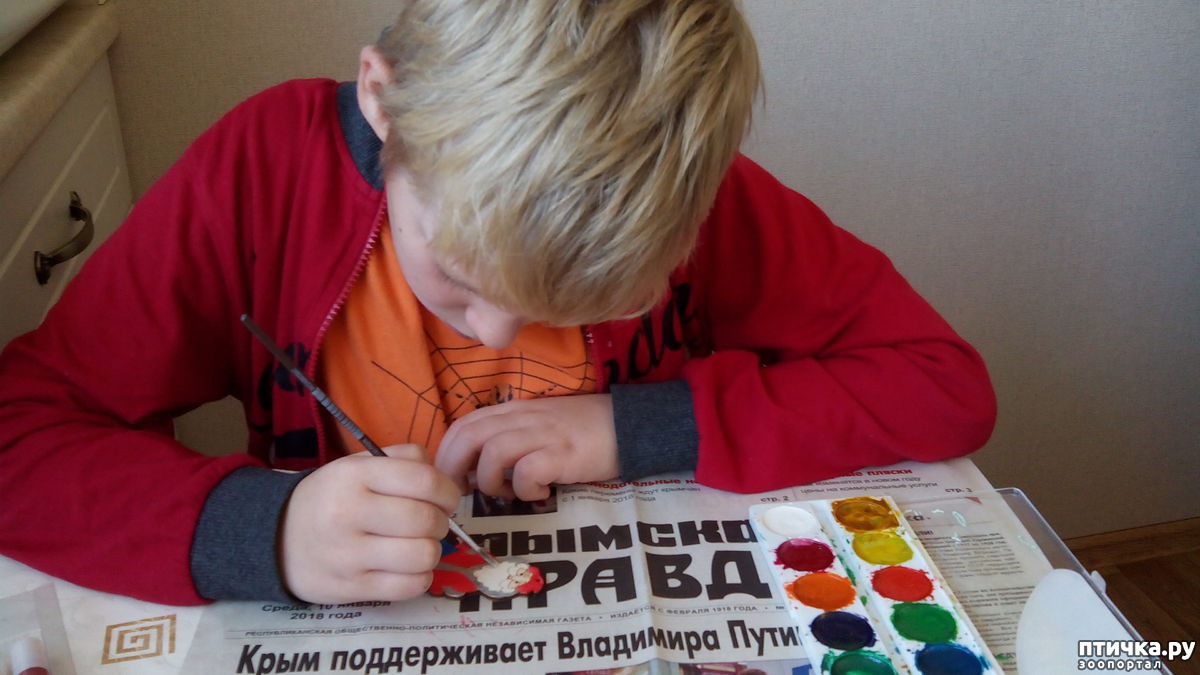 Сначала он с любопытством разглядывал, чем мы занимаемся. Даже кисточку на зуб попробовал.