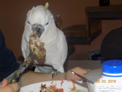 Ну и сухарики погрызть тоже не откажется, заодно и клюв поточит.