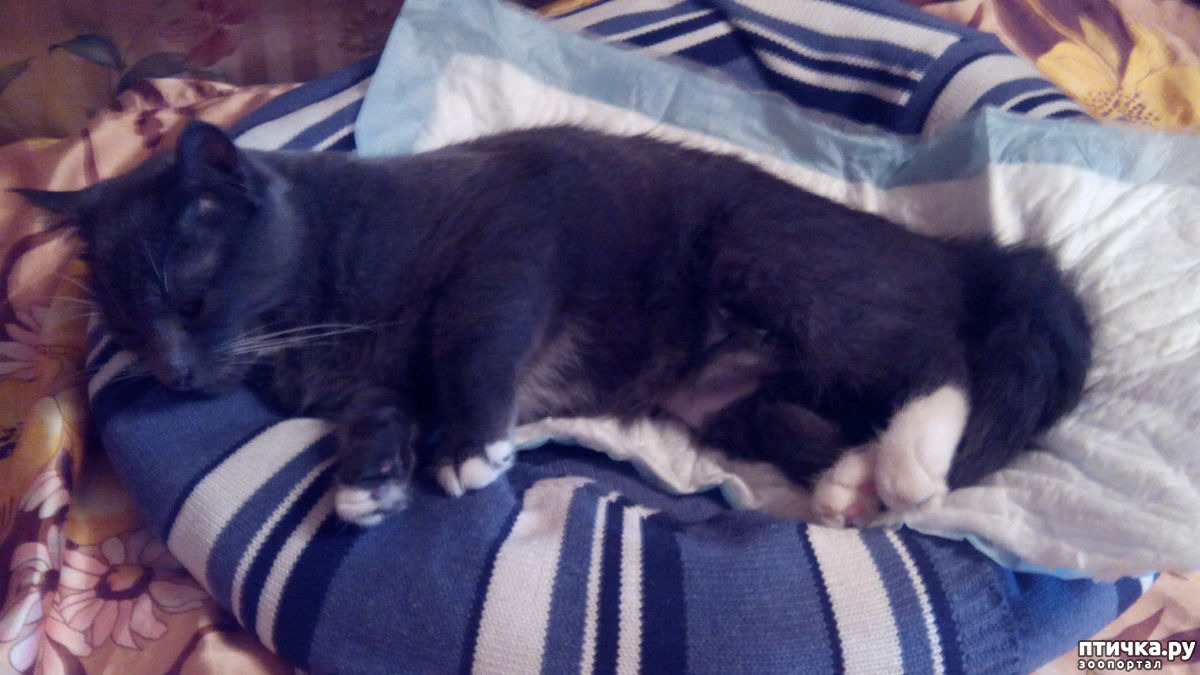 Мурчику разрезали животик и там в брюшной полости нашли и удалили семенники.
