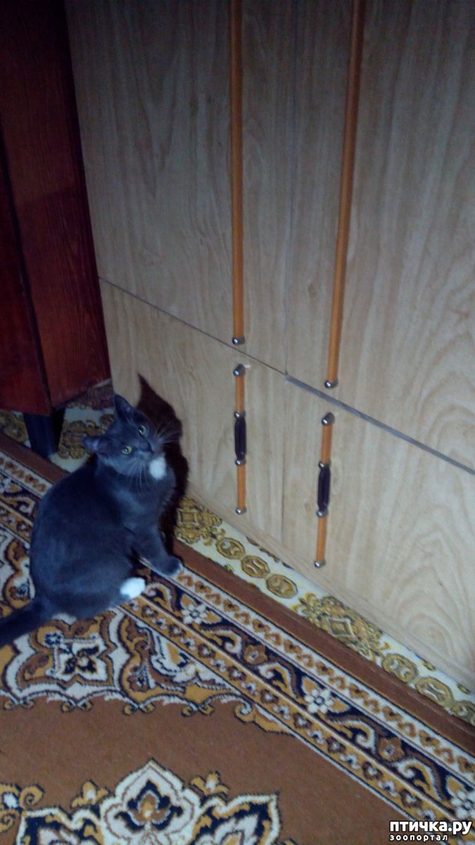 Она подошла и стала открывать не тот шкаф. Так Мурчик замяукал и стал лапками шкрябать по той дверце, где пакеты с едой - мол, вот тут открывай, корм здесь.