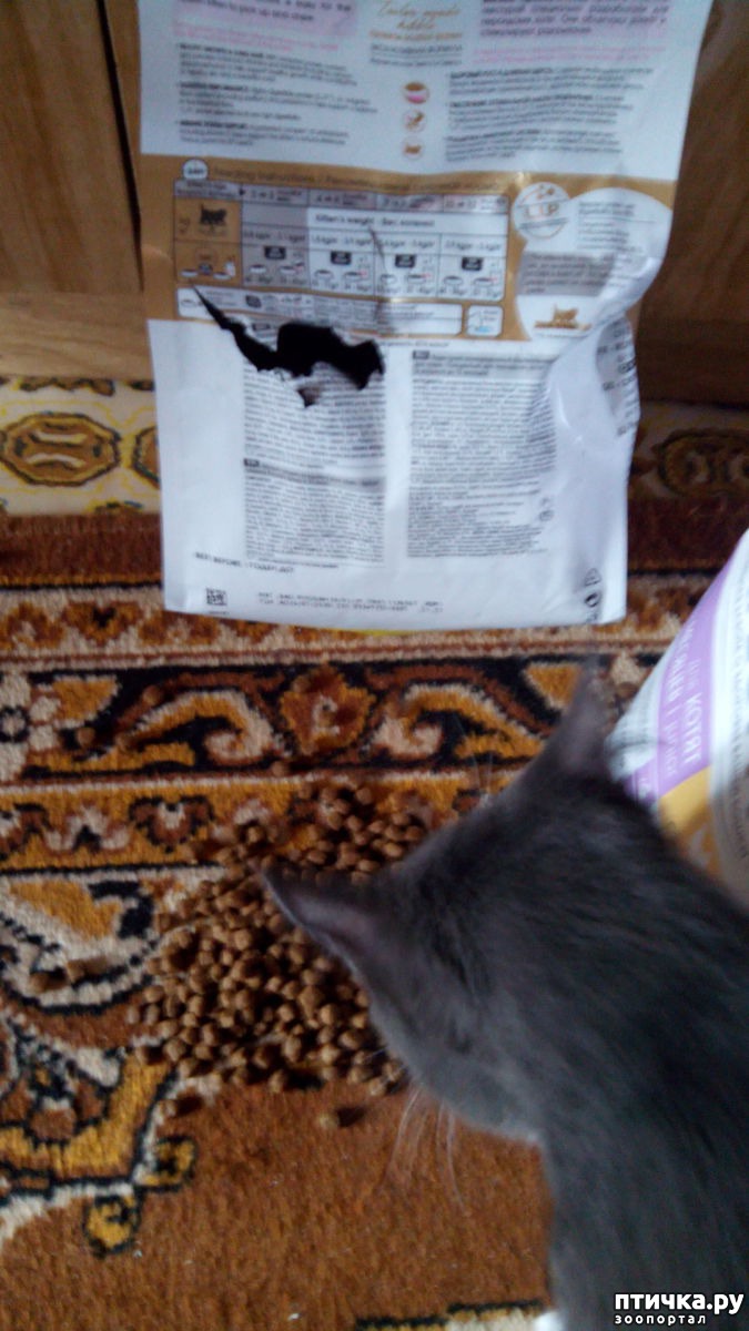 И ладно бы, если б еды в миске не было. Так нет же, в миске не вкусно, надо пакет разодрать.