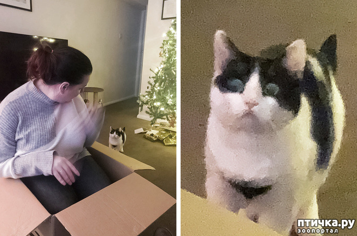 «В гостиной стояла большая коробка, и я сказала сестре залезть в нее. Реакция кошки бесценна».
