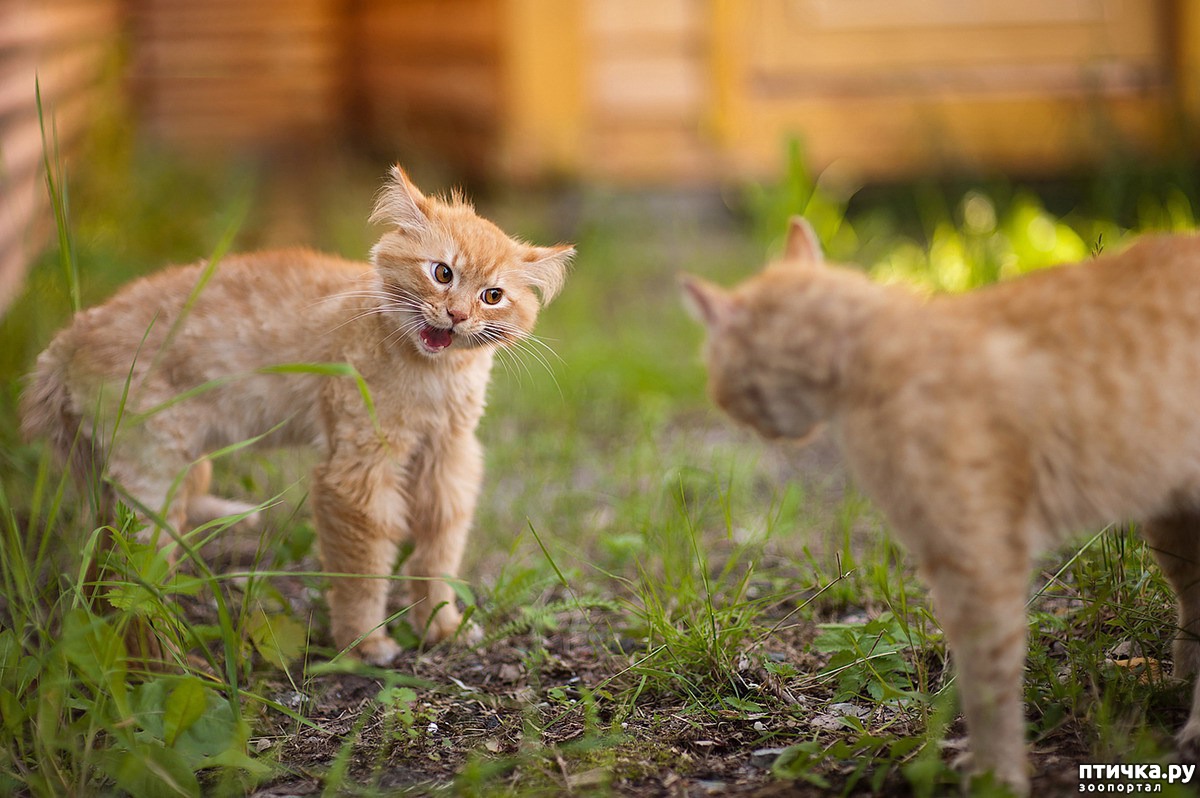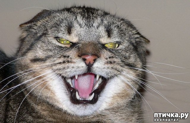 3. Гневный вопль.Вы слышите этот крик, когда два кота борются за «сферы влияния». Крик начинается при открытой пасти, он состоит из длинных протяжных звуков, которые издаются за счет медленного открытия и закрытия пасти. Результатом является долгое «вввааааа-аооооууввв». При этом обнажаются клыки, голова слегка наклонена, взгляд жестко фиксируется на обидчике.