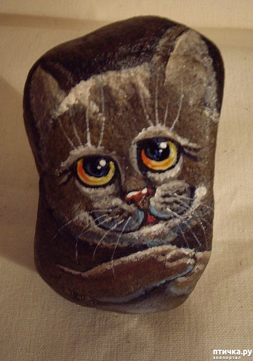 Не знаю, кому первому пришло в голову расписывать камни. Но это было придумано здорово! Увидев впервые, была просто поражена простотою и в то же время какой-то художественной законченностью этих природно-рукотворных миниатюр. И почему-то удачнее всего в любые камни вписываются именно кошки. Может потому что их природная гибкость, грация, подвижность позволяет им принимать совершенно неожиданные позы!
