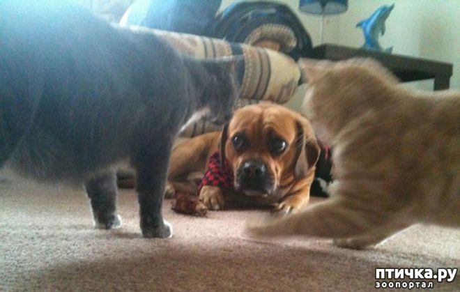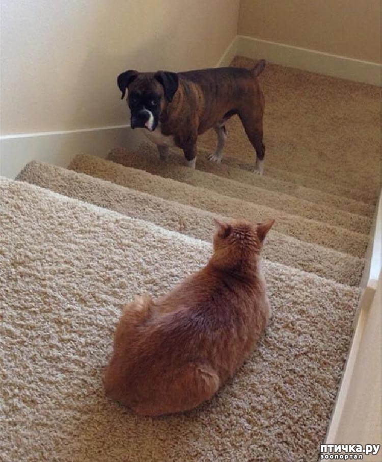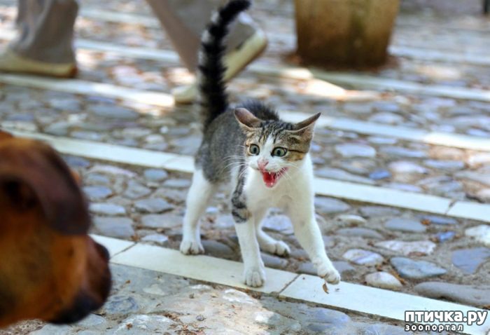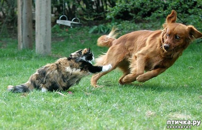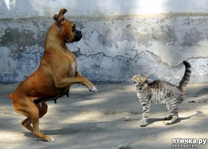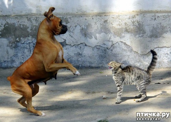 Некоторым «охотникам» за интересными кадрами удалось запечатлеть нешуточные споры между братьями нашими меньшими! Остаётся только удивляться, как же миниатюрные создания – котики и кошечки - могут напугать больших и сильных псов? Может быть, котики владеют искусством гипноза и заставляют поверить собак, что они большие пантеры или львы?