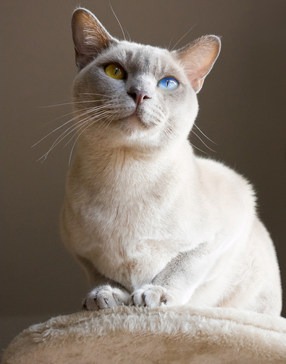 Когда Муська, - так мы её назвали, подросла, у неё один глаз стал глубокого-синего неба, а другой - цвета майской листвы... Но инстинкт истинного сиамского кошака в ней присутствовал во всей красе: например, она любила подстерегать людей из-за сады, из темноты... когда свет попадает ей в глаза: тогда у неё один глаз сиял зелёным, другой - красным.