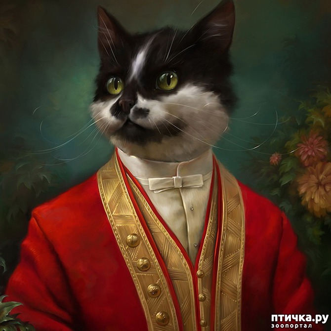 Художник из Ташкента создал роскошную серию открыток для журнала «Эрмитаж». На них изображены коты в придворных нарядах, и, к слову сказать, выглядят они в них очень органично. Открытки стилизованы под классические картины маслом, так, что кажется, будто бы кошки и впрямь приоделись в парадные мундиры.