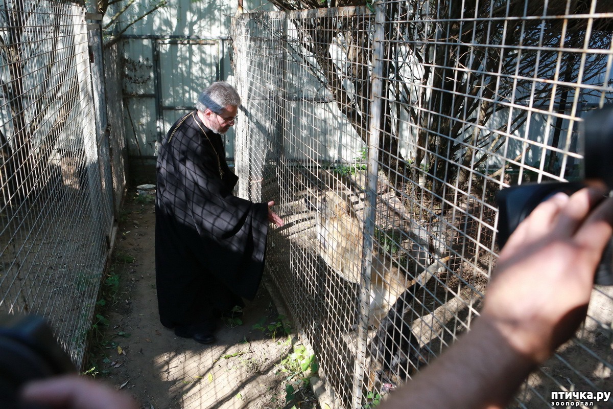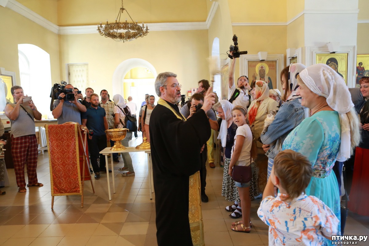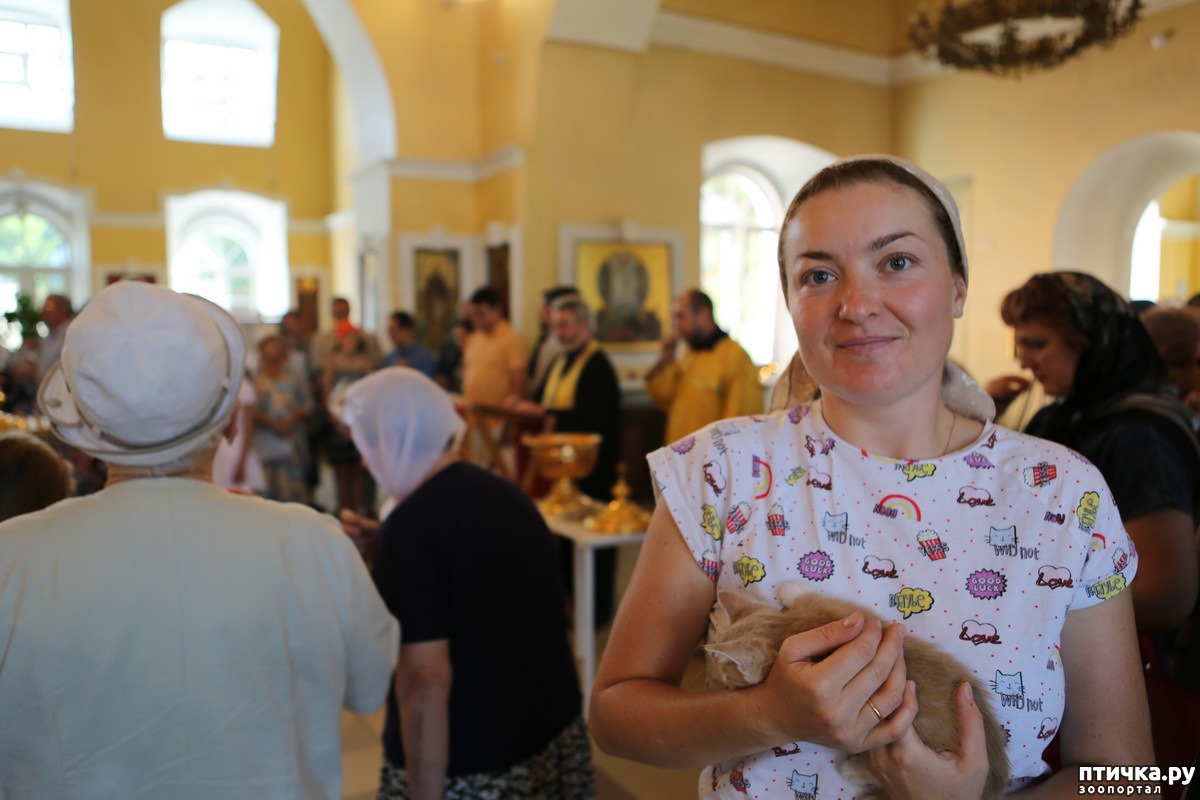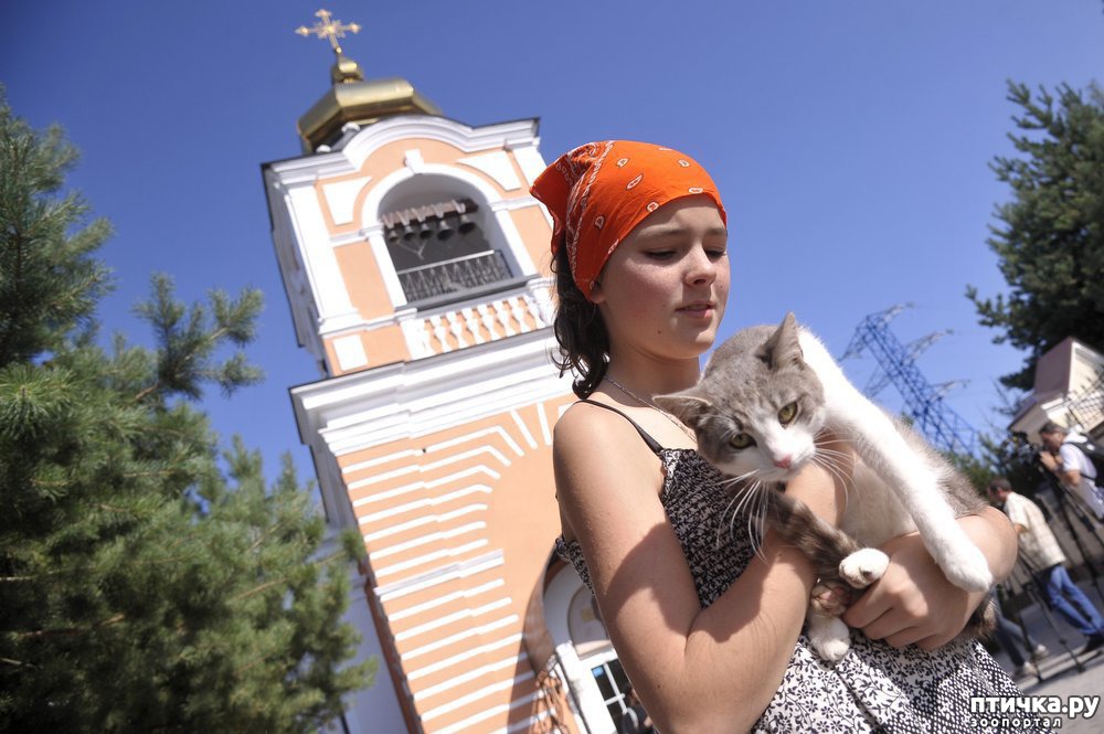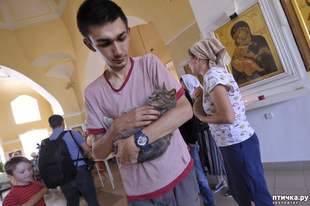 — Мы молимся о людях, которые по своему милосердию готовы делиться любовью с несчастными собаками и кошками, лишенными крова, и участвовать в их спасении, — сказал настоятель храма протоиерей Петр Дынников. Верующие приехали на богослужение вместе со своими котами и кошками. По окончании молебна о. Петр окропил животных святой водой.