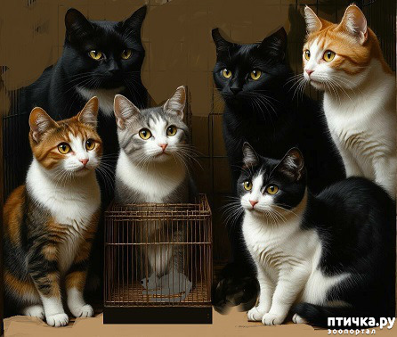 А там, в комнате дочери, концерт по заявкам - посередине стоит Квисти с мышкой в зубах (снова живая), а вокруг собрались все остальные - четверо, хвостатых и смотрят на них. Малышка Квисти держит добычу в зубах и рычит на них, а те смотрят и, видимо, ждут, что она поимеет совесть и поделится добычей))