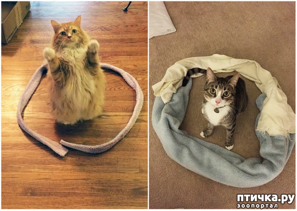 Как известно, коты — чума XXI века. Едва ли на планете в наши дни найдется человек, который не подпал под очарование этих очаровательных тварей. Поэтому то, что мы сейчас расскажем, без преувеличения касается всех. Пользователи Интернета и обладатели котов обнаружили странную закономерность. Стоит выложить на полу или другой поверхности что-то в форме круга (не важно что — веревку, хулахуп, провод, гирлянду), как кот поспешит сесть в середину. Кругу даже необязательно быть круглым: он может быть и прямоугольным, и квадратным. Для кота, видимо, главное, чтобы пространство было замкнуто. Эксперимент подтверждается десятками фотографий. Попробуй провести его на своем коте. Работает безотказно. Единственные минус: пока совершенно неясно, как преобразовывать подобное поведение котов в электроэнергию или иную прибыль.