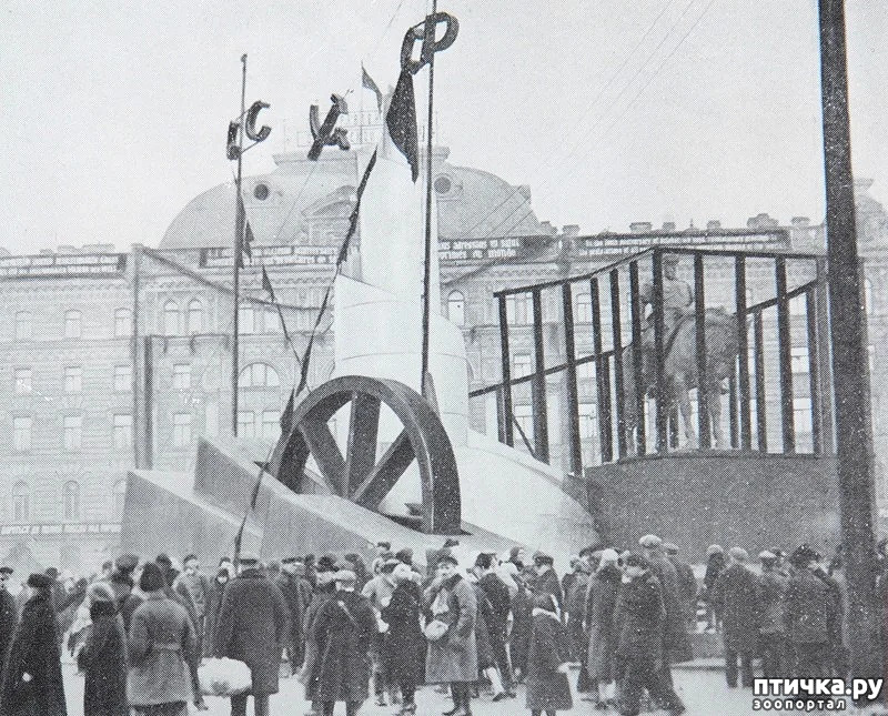 В дни празднования 10-летнего юбилея Октябрьской революции памятник Александру III поместили в железную клетку. Рядом с ним построили винтовую башню, огромное колесо и две мачты с буквами СССР и символом новой страны - серпом и молотом.