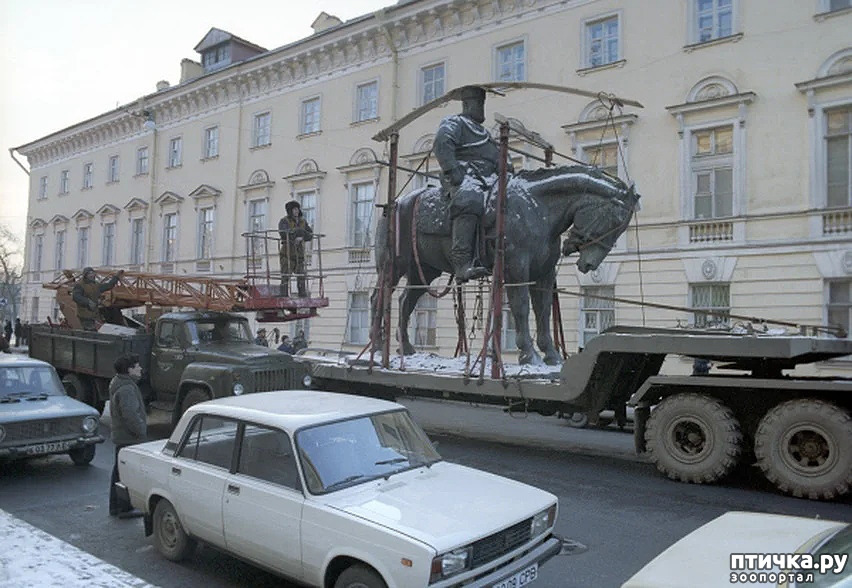 Конная статуя заняла постамент, на котором стоял броневик "Враг капитала". Именно с него читал свои пламенные речи на Финляндском вокзале вождь революции В. И. Ленин.