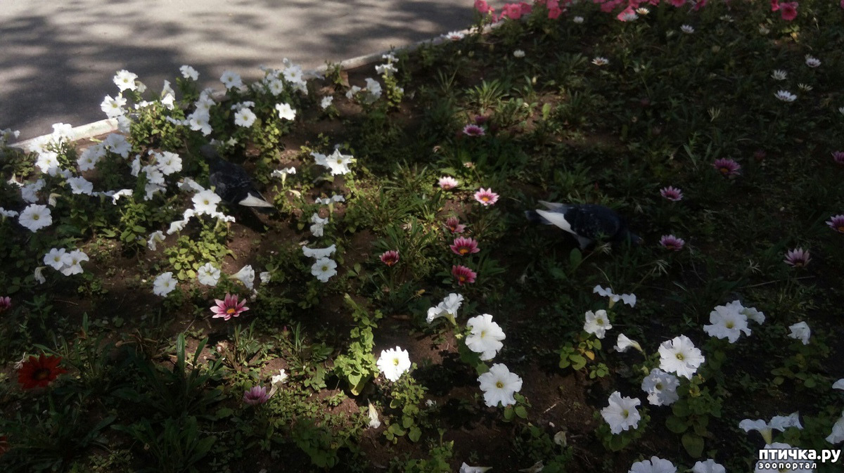 Тут голубки в клумбе потрошат цветочки, видимо, находят там червячков, букашек и запасы росы.