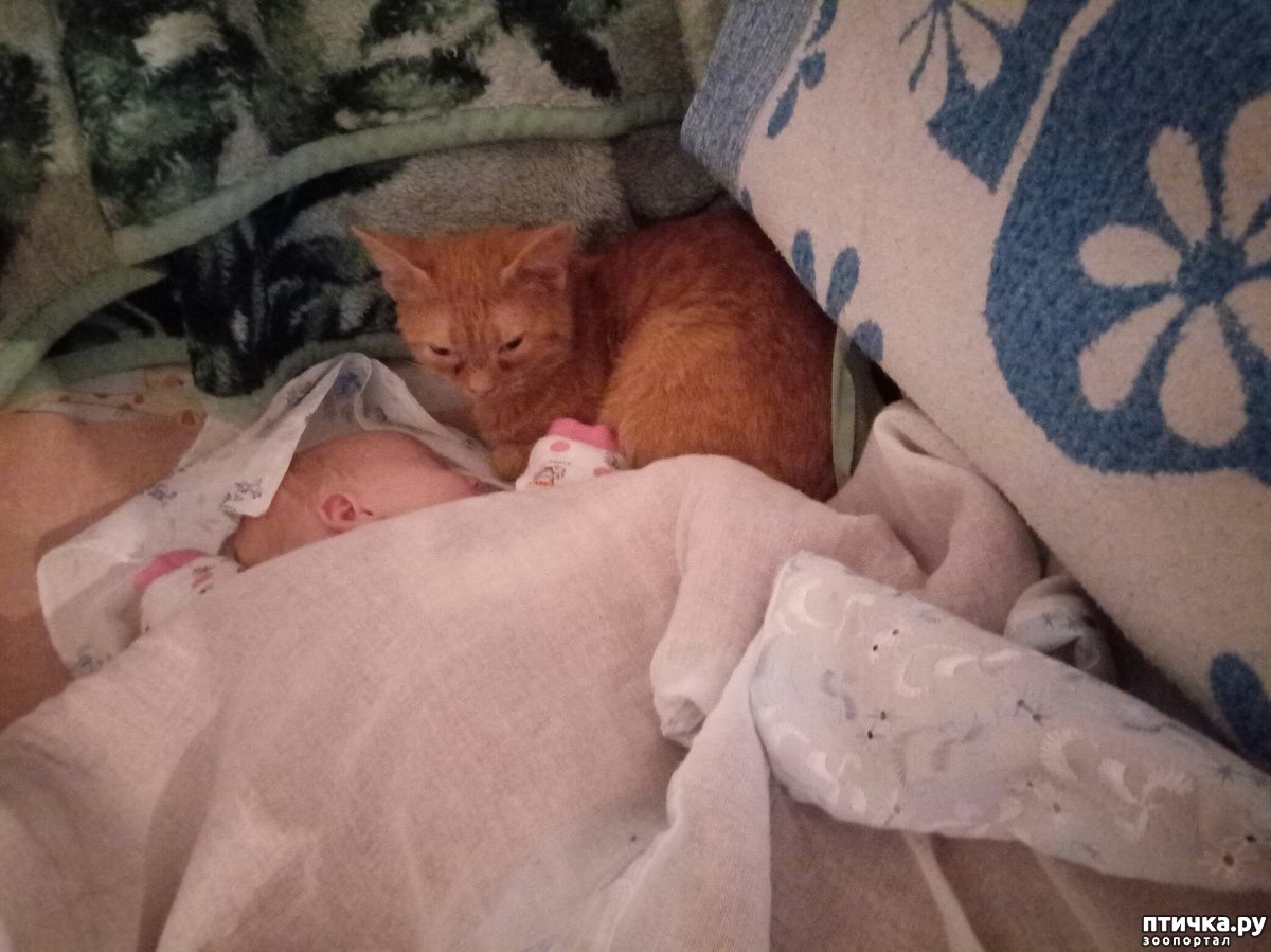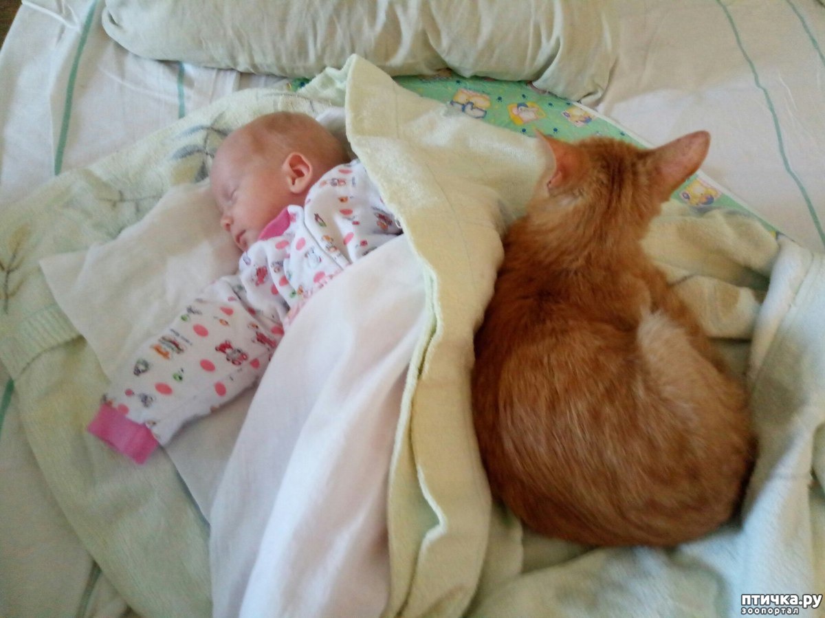 Завтра ровно три месяца назад, как я стала мамой. Дочку достали через КС, недоношенную, слабенькую. Месяц дочь лежала реанимации, разлучились так надолго. Много было слез, много ожиданий... Выписали с диагнозом киста головного мозга. Когда Иринку привезли домой и уложили в кроватку, Левушка сразу пробрался к дочке и улегся у ее головы. ТНогда из другого города мне типа на помощь приехала мама. Неделю, пока она была у нас, мама гоняла Леву от ребенка, истерила, закрывала в комнате. Левка орал, рвался к Иринке, бросался на двери комнаты. Дома воцарился полный хаос. Я была на грани истерики, пропало молоко, маму со скандалом выперли через неделю домой, а Леву пустили к дочке... На контрольном узи через месяц после выписки кисты не обнаружили, она полностью рассосалась. Я до сих пор уверена, что это только благодаря Левчику. Свекровь, которая тоже живет в другом городе, сказала, что кот не при чем, и это все ее молитвы. Не знаю, так ли это, молитвы я не слышала, а кот спал с ребенком при мне.
