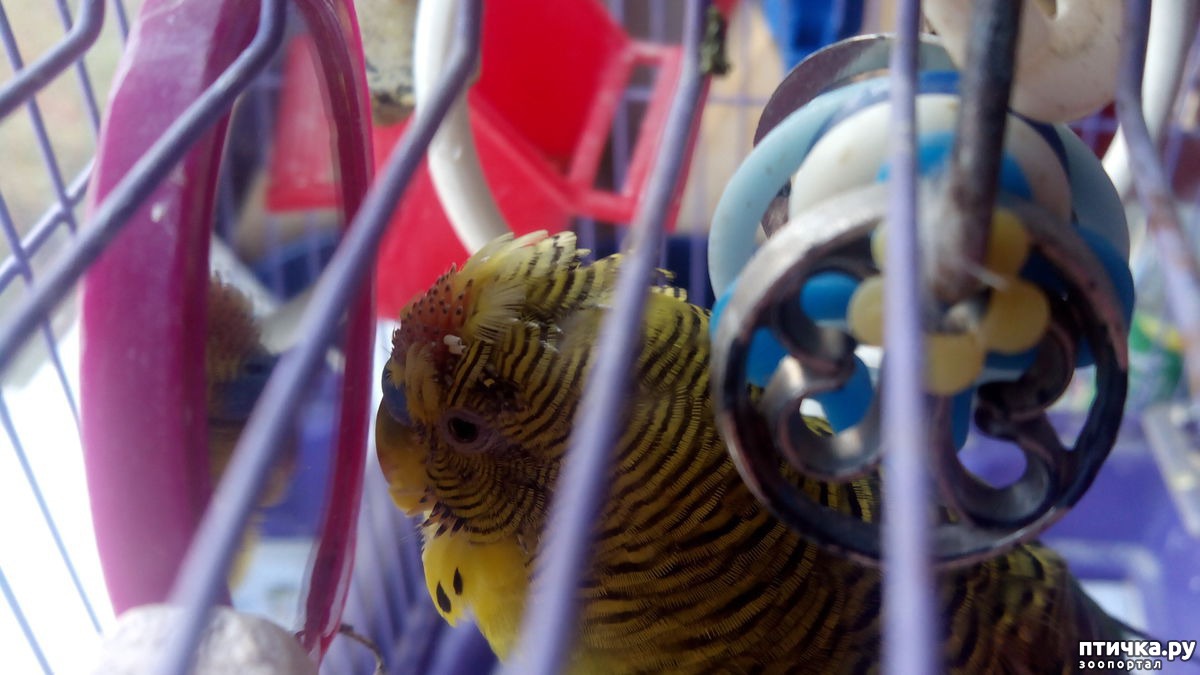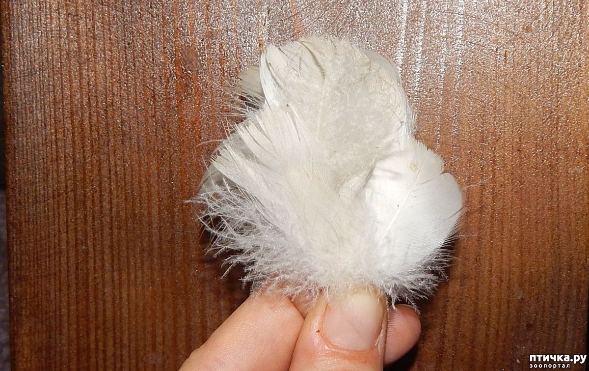 В клетке очень много маленьких перышков, да и длинные из хвоста он тоже вытаскивает.