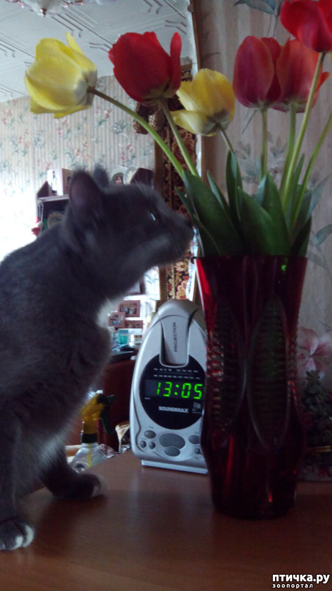 Написать комментарийУ меня Персик равнодушен к цветам, не грызёт, не сбрасывает; травку не ест...иногда понюхает цветы в вазе и уходит...