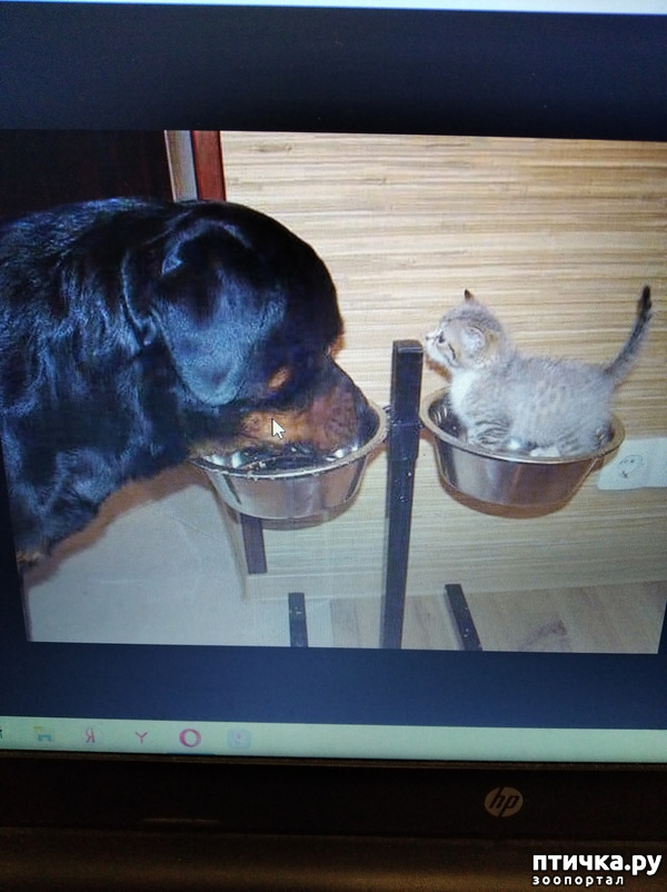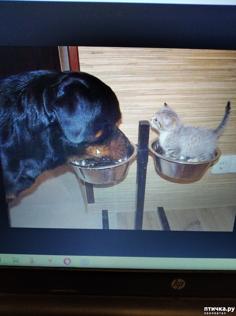 За неделю до этого кобели на прогулке пришли к нему с видом «умрём, но не признаемся». И запросились домой. У ротвеля в пасти явно что-то есть… оказалось, котёнок! Полуслепой, блохастый, вся морда в гное! Посмотрел Вовка на кобелей и взял детёныша домой.