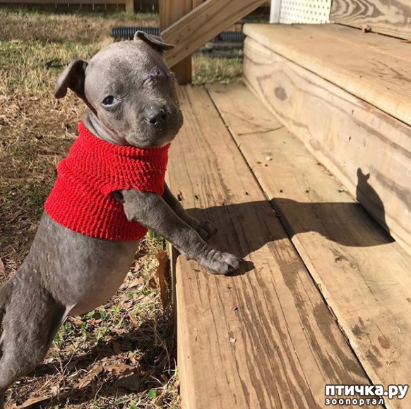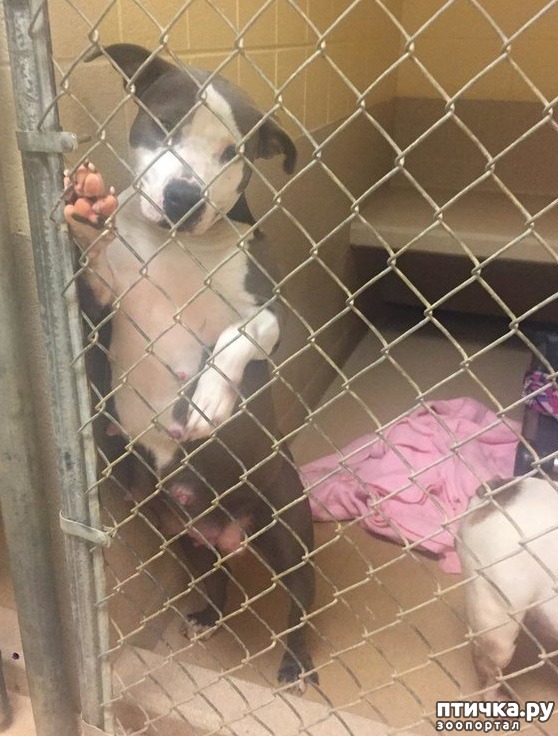 Бездомная собака породы питбуль была найдена на улице в Южной Каролине, США. Спасатели решили устроить Даю в шелтер, но проблема была в том, что там практически не было места, так что решено было её усыпить. Обнаружилось, что Дая, так её решили назвать, похоже ожидает щенков. К сожалению, видимо впоследствии пережитого, щеночки умерли в утробе матери.