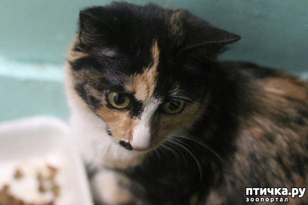 По основному тёмному окрасу у неё были разбросаны чёрные полосы и рыжие пятнышки. Лоб разделялся ровной полосой на две части - рыжую и черную. По черному носику веснушками разбегались рыжие звездочки, носопырка была терракотового цвета. Под подбородком расползалось вниз белое пятно. Полосатая шубка была украшена широкими огненно-рыжими мазками, как будто художник, пробуя кисть, провел по ней яркой краской. Небольшие рыжие пятнышки вкрапливались в основной окрас. Вся эта пестрота дополнялась белой полосой на животе, белыми "тапочками" на передних лапках и "носочками" на задних. Признаюсь, видела я в жизни немало кошек окраса "черепаха", но такая "палитра" встретилась мне впервые.