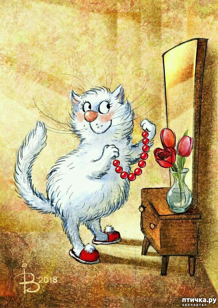 Она, наверно, своего кота рисует, на многих картинах один и тот же кот с белой кошечкой.