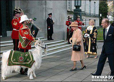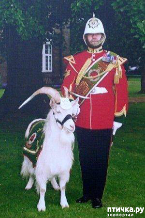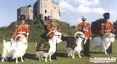 На этом фото уникальная козья служба.. Эти козлы исторически являются талисманами личной гвардии английской королевы Елизаветы, валлийских стрелков... И эта козья служба передаётся от папы-козла к козлу-сыну.. эта довольно-таки редкая разновидность всем привычных зааненцев-это длинношёрстная вариация называется аппенцеллер.. Называются козы так же как швейцарская порода собак..